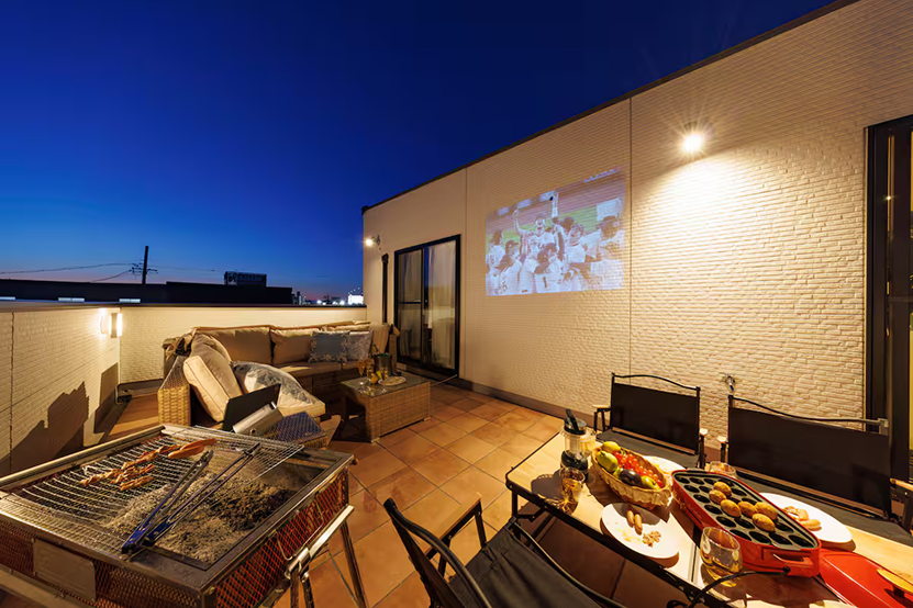 広々としたオープンキッチンでのパーティー、お庭やバルコニーでのひととき、大画面での映画鑑賞…