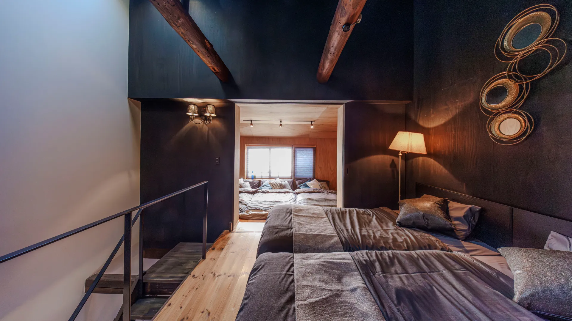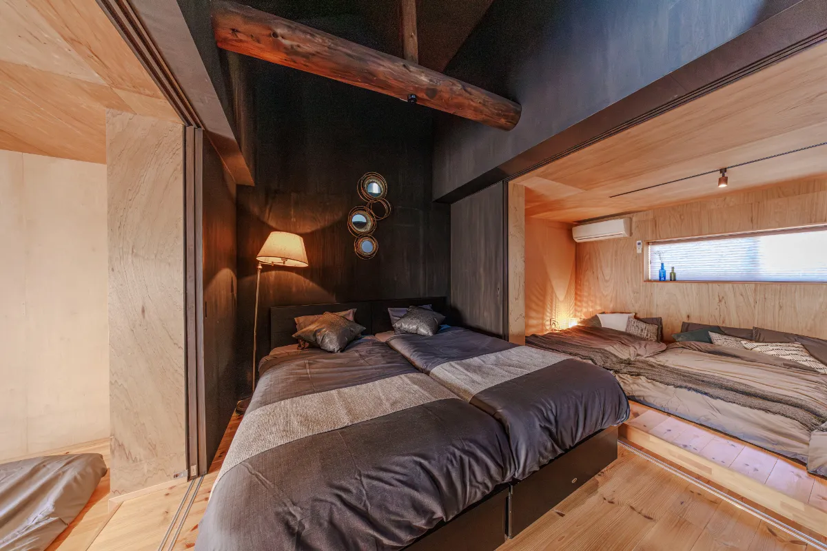 寝室は全4部屋をご用意しており、最大10名様まで一緒にご宿泊可能、2つのルームは中から施錠も可能で大人数でもプライベートを確保できます