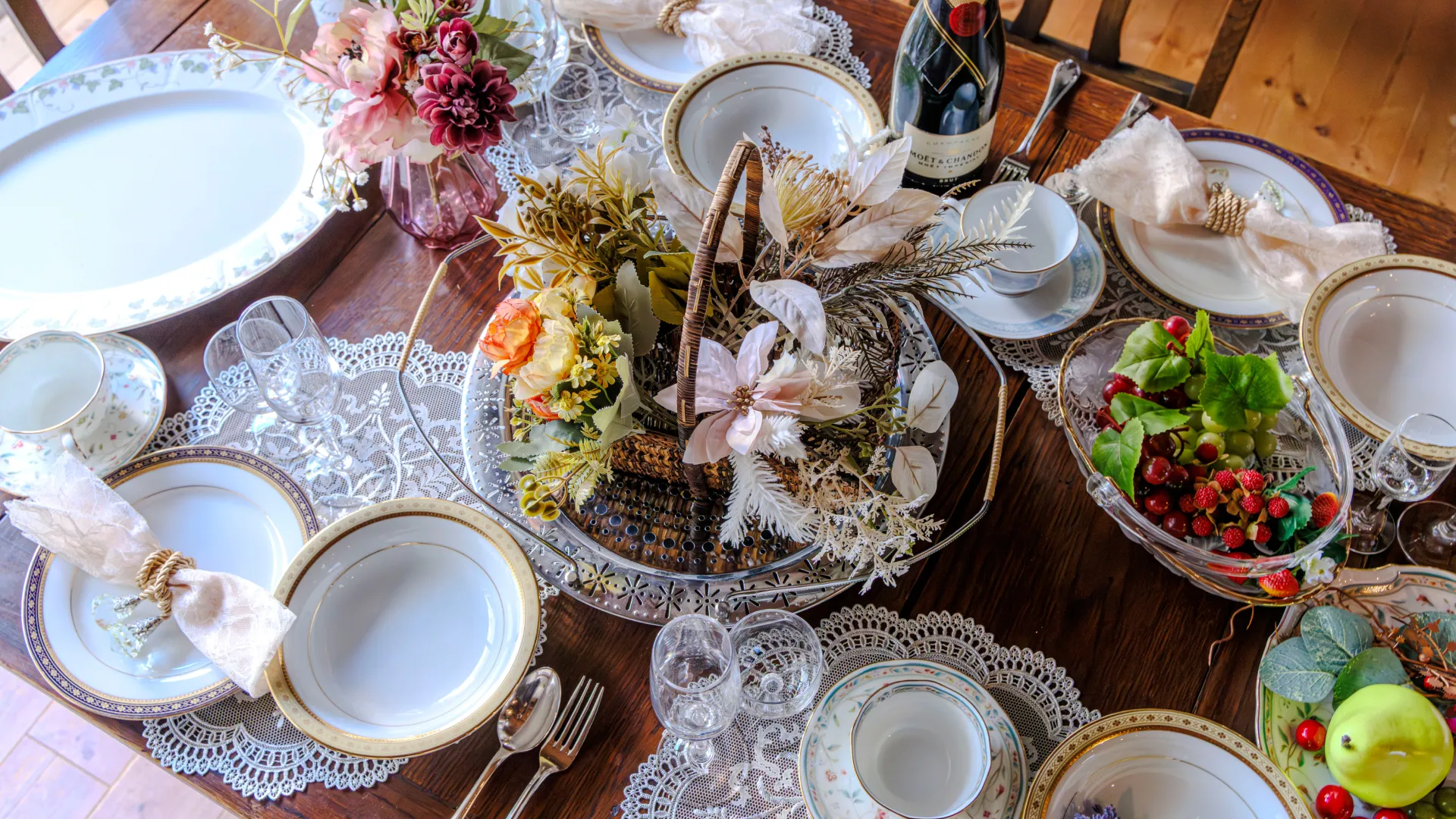 ノリタケの森にほど近い立地を活かし、食器はすべてノリタケの高級食器で統一
